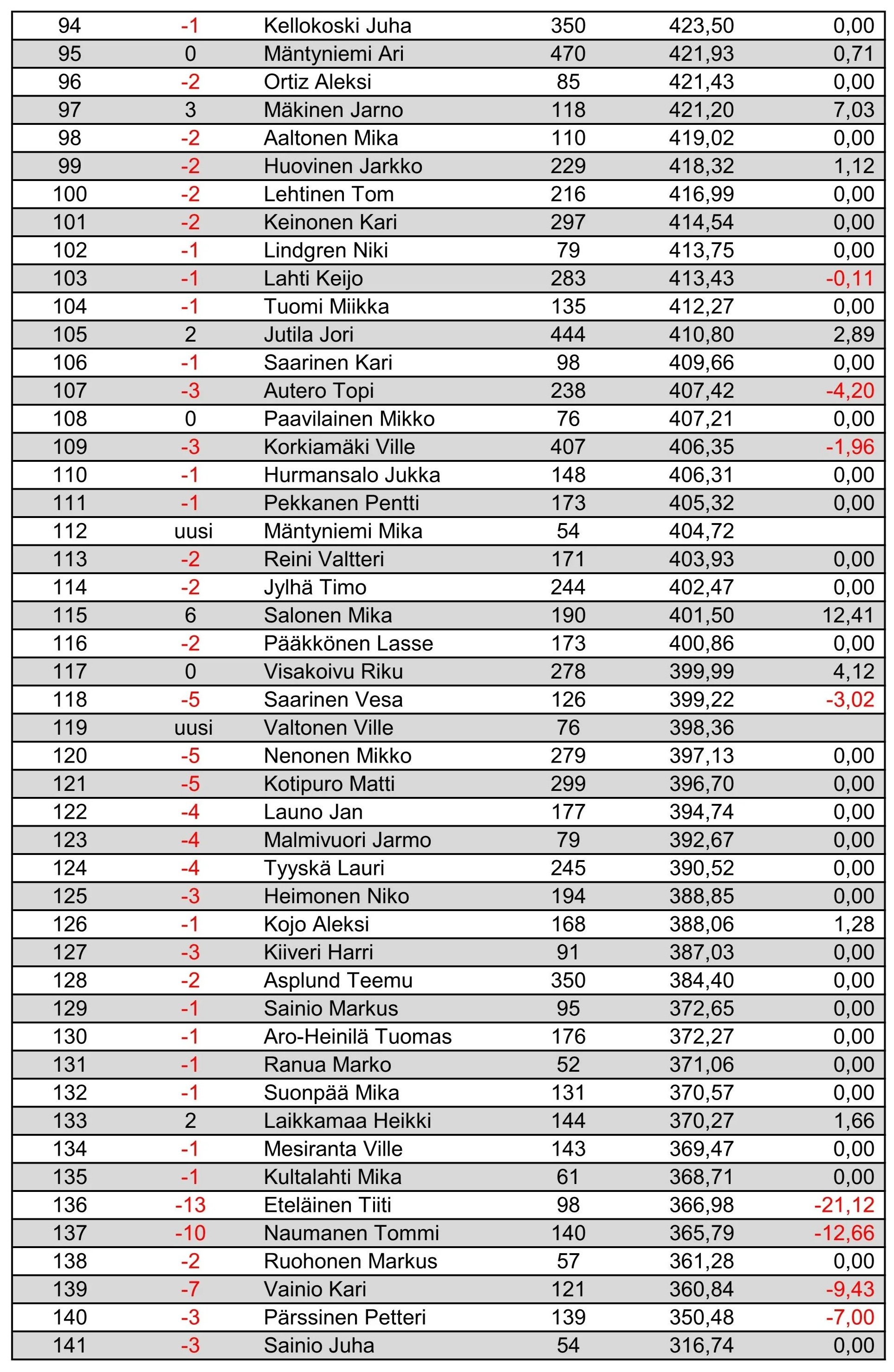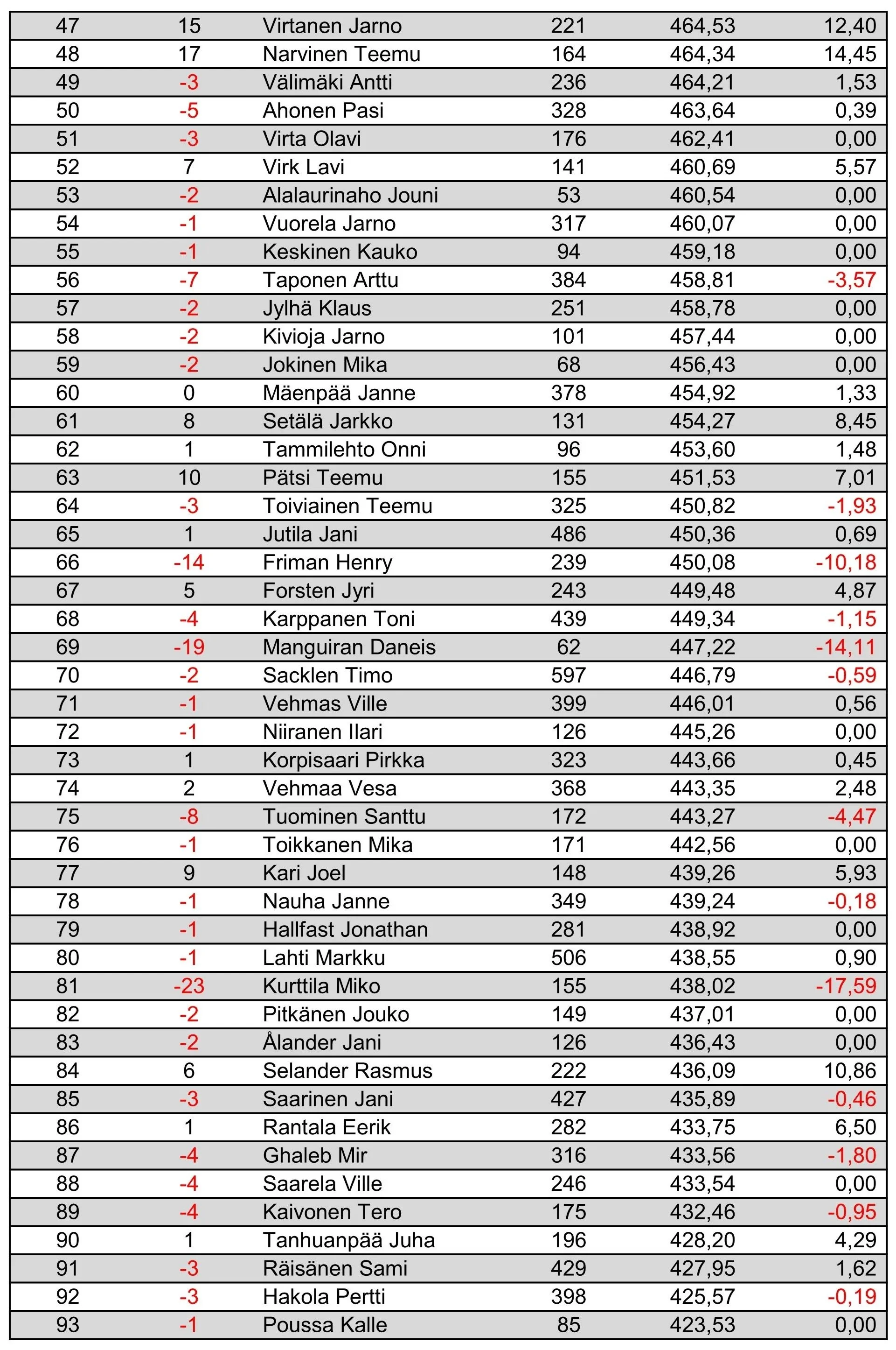202 pelaajaa, 2529 pelattua ottelua, 18497 pelattua erää